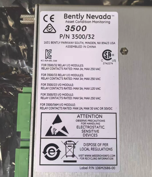 Bently Nevada 3500 4-канальный модуль реле полной высоты с логикой управления сигнализацией